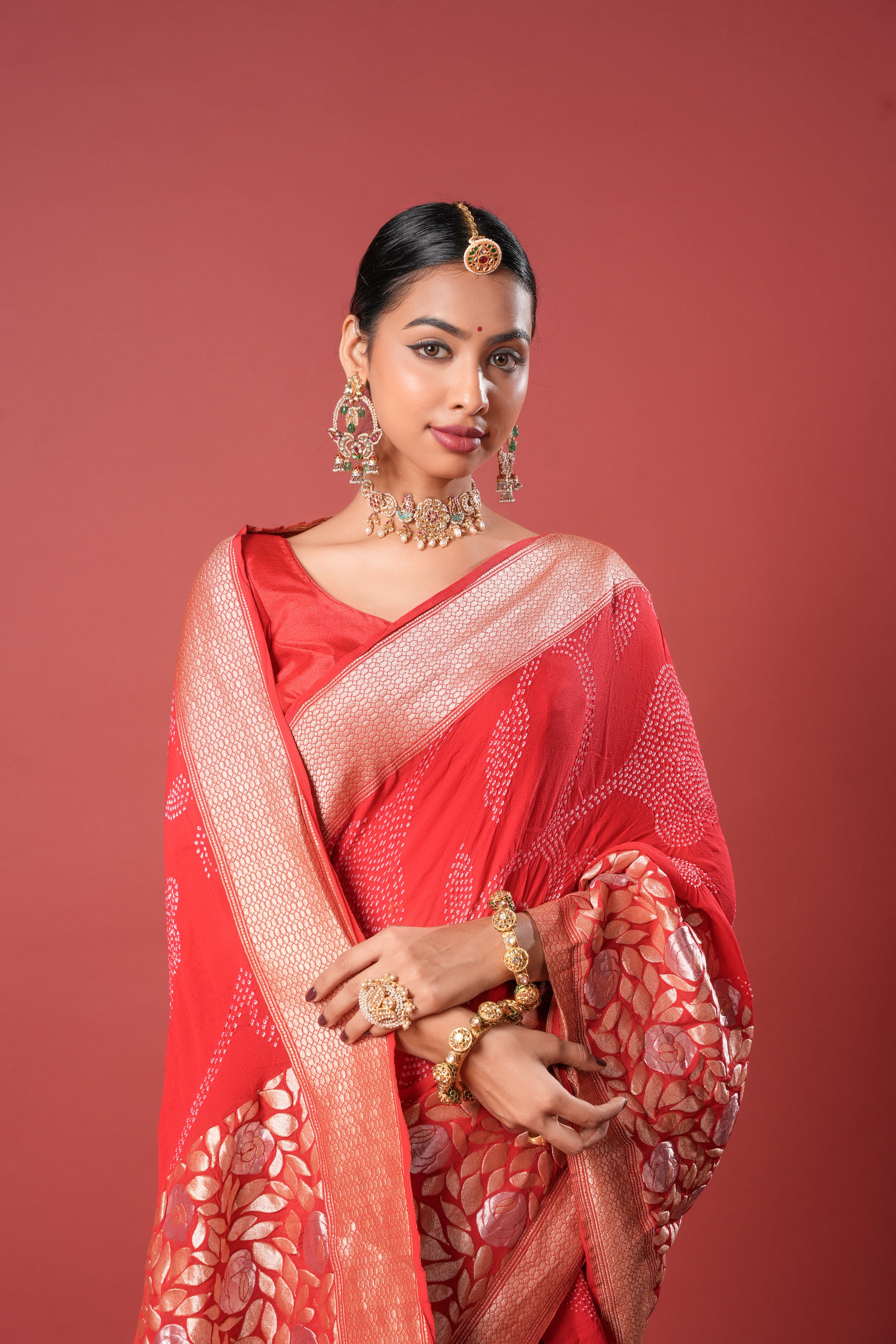 Pure Banarasi Georgette Bandhani Saree - Kusumroj